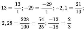 Các số 13, -29; -2,1; 2,28; -12/-18 có là số hữu tỉ vì: