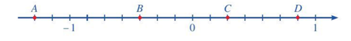 Bài 4 trang 11 Toán lớp 7 Tập 1: Quan sát trục số sau và cho biết điểm A, B, C, D biểu diễn những số nào: