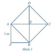 Bài 5 trang 35 Toán lớp 7 Tập 1: Quan sát Hình 1, ở đó hình vuông AEBF có cạnh bằng 1 m, hình vuông ABCD có cạnh AB là một đường chéo của hình vuông AEBF.