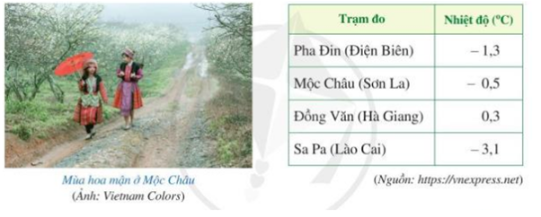 Câu hỏi khởi động trang 5 Toán lớp 7: Nhiệt độ lúc 13 giờ ngày 24/01/2016 tại một số trạm đo được bởi bảng như sau: