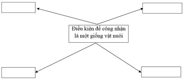 Điền nội dung các điều kiện để công nhận là một giống vật nuôi vào ô trống theo mẫu sơ đồ sau: