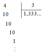 Ta đặt tính để tính thương 4 : 3 như sau: