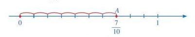 Số hữu tỉ 7/10 được biểu diễn bằng điểm nằm bên phải gốc O, cách gốc O một đoạn bằng 7 đơn vị mới.