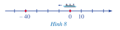 Khởi động trang 44 Toán lớp 7 Tập 1: Hình 8 mô tả một vật chuyển động từ điểm gốc 0 theo chiều ngược với chiều dương của trục số. Sau 1 giờ, vật đến điểm –40 trên trục số (đơn vị đo trên trục số là ki – lô – mét).
